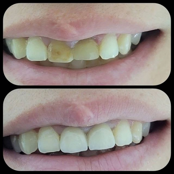 The materials used for whitening are: Carbamide Peroxide and Hydrogen Peroxide (oxygenated water). These two substances have the ability (quality) to pass freely through the layers of the tooth (enamel, dentine) and spread to all parts of the tooth. These Peroxides (Carbamide and Hydrogen peroxide) break down into oxygen radicals, which enter between the prisms of the enamel (the outer layer of the tooth), dispersing (dissolving) the colored molecules that affect the color of the tooth. Bleaching does not affect the tooth structure. It's just that the inner color of the tooth becomes whiter (lighter). Whitening agents break down into smaller molecules and move in all directions within the tooth. Even if the entire tooth is not covered with bleach, it is all whitened. Numerous scientific studies have proven the effectiveness of peroxides in teeth whitening. Enamel and dentin (the two layers of the tooth), existing fillings and porcelain are not affected, affected or damaged by bleaching agents.